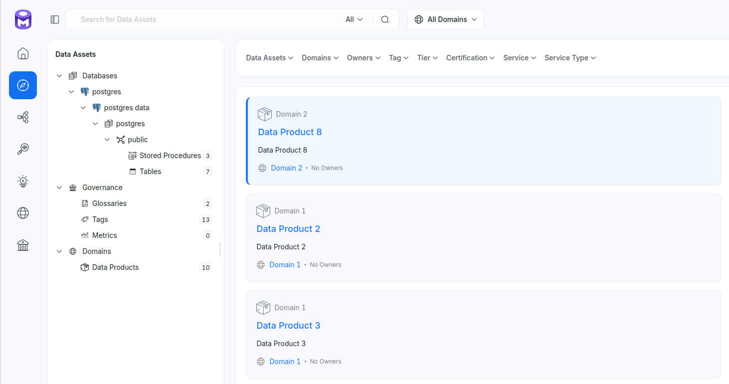 Its user interface reflects that focus. Concepts such as database services, schemas, and assets are exposed directly, assuming users understand how data infrastructure works. This is effective for power users, but it creates friction when OpenMetadata is used by a broader audience.